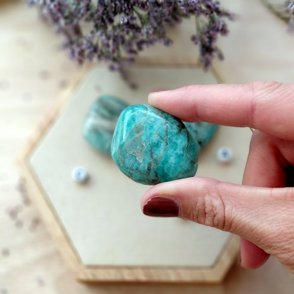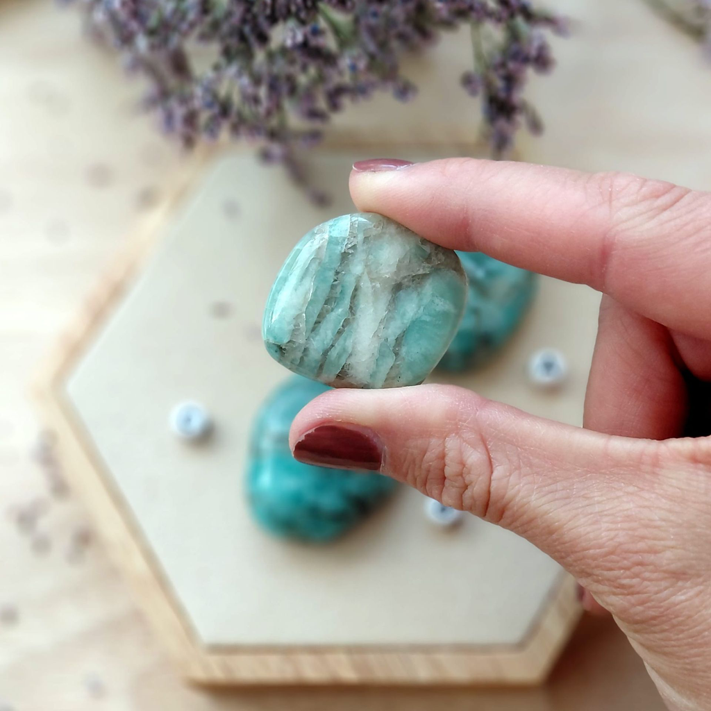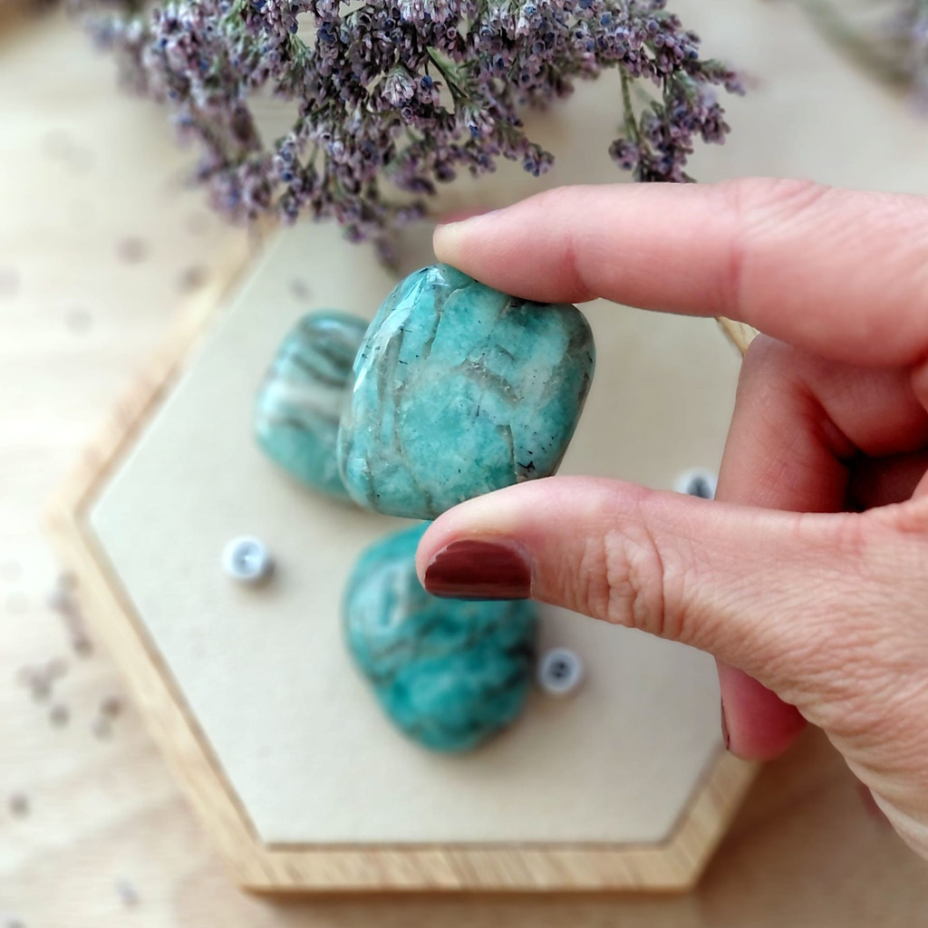 Amazoniet is een edelsteen die bekendstaat om zijn kalmerende en beschermende werking. Amazoniet wordt vaak gebruikt om rust en helderheid in je leven te brengen en is een fijne steen voor wie meer emotionele stabiliteit zoekt. Het helpt je om emoties in evenwicht te brengen en stress te verminderen. Werkt als een energetisch schild tegen elektromagnetische straling en negatieve invloeden. Ondersteunt je bij het uiten van je gevoelens en bevordert een open, eerlijke communicatie. En het helpt je beter naar je innerlijke stem te luisteren en vertrouwen op je intuïtie.