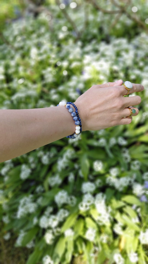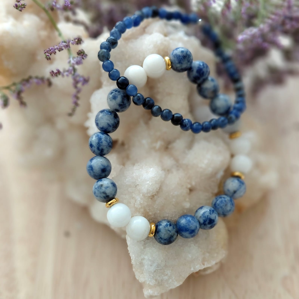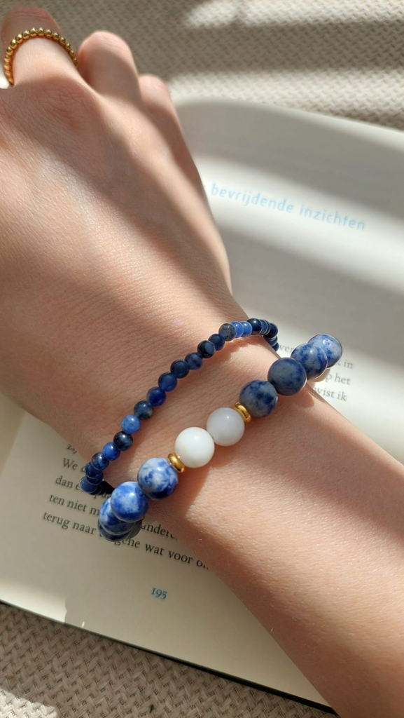Sodaliet en witte Jade vormen samen een krachtige combinatie die intuïtie, helderheid en rust ondersteunt.